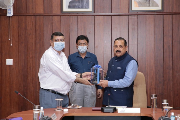 Memento presented by Shri Naveen Tomar, SGI to Dr. Jitendra Singh, Hon'ble Minister S&T at SGO